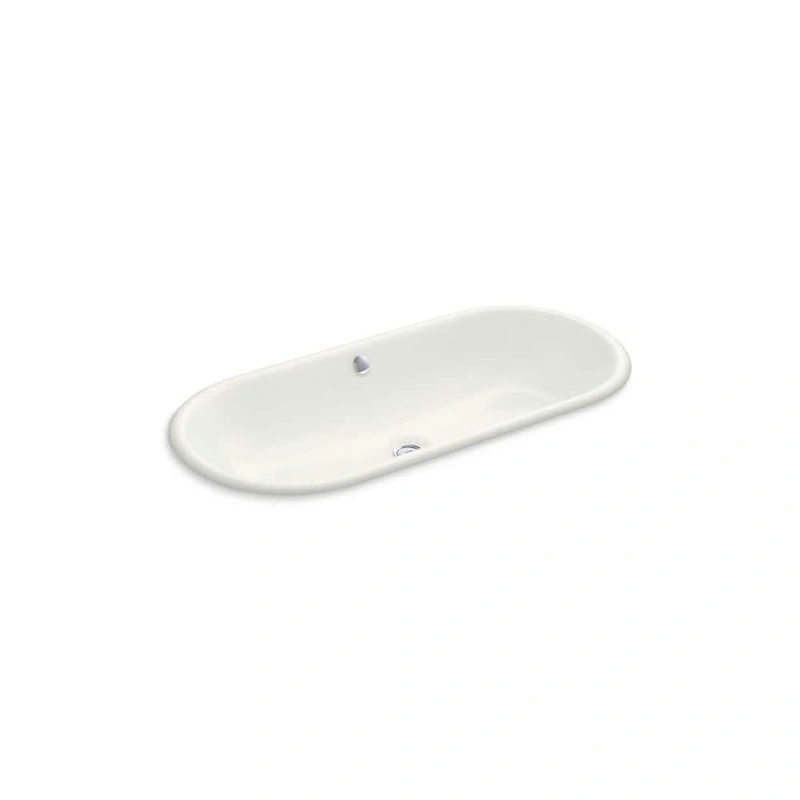 This cast iron bathroom sink by KOHLER calls to mind the engaging allure of time-honored artistry. Its elongated oval shape masterfully blends modern minimalism with classic sophistication, inviting a sense of permanence and tranquility into your space. Place it in a luminous marble bathroom for a look that feels both grand and serene, or juxtapose with industrial textures for a captivating contrast. An essential element of luxurious living, this sink is not just a functional necessityits a defining centerpiece.