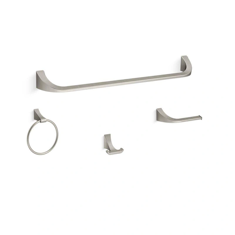 KOHLER Katun 4-Piece Bathroom Hardware Set The KOHLER Katun 4-Piece Bathroom Hardware Set in Vibrant Brushed Nickel adds an elegant touch to any bathroom with its sleek, modern design. Crafted from premium metal, this set is designed to resist corrosion an