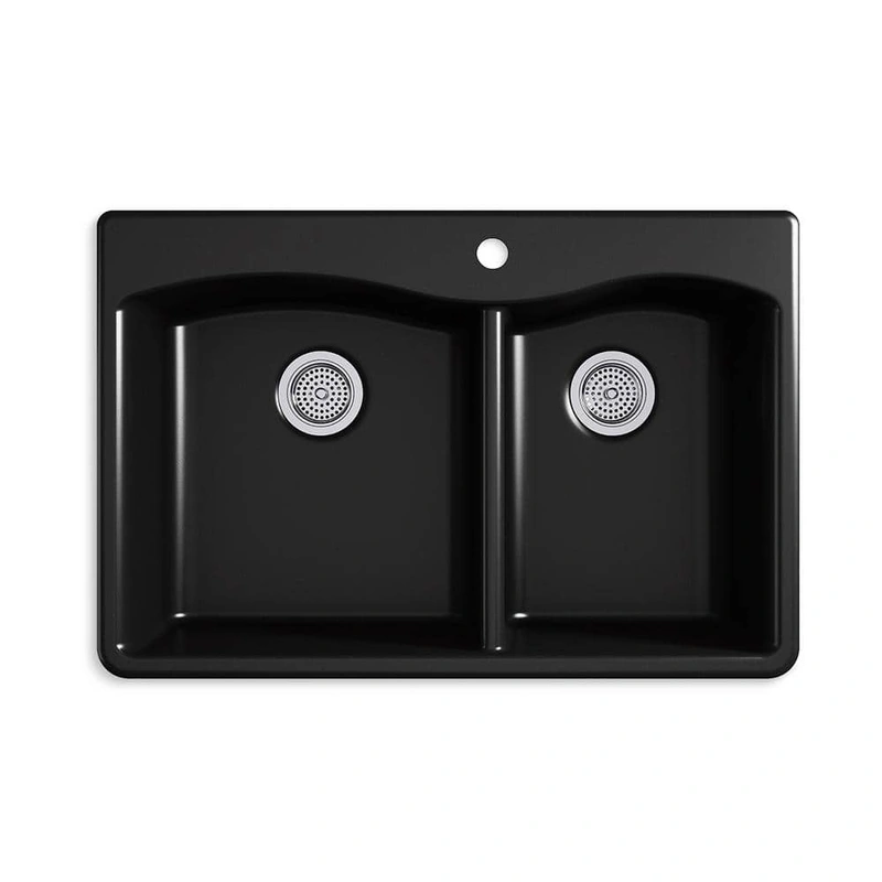 KOHLER Kennon 33" Matte Black Double Bowl Sink The KOHLER Kennon 33" double-bowl sink combines outstanding durability with a sophisticated design. Perfect for busy kitchens, it's made from KOHLER's Neoroc Granite Composite, offering heat resistance up to 7