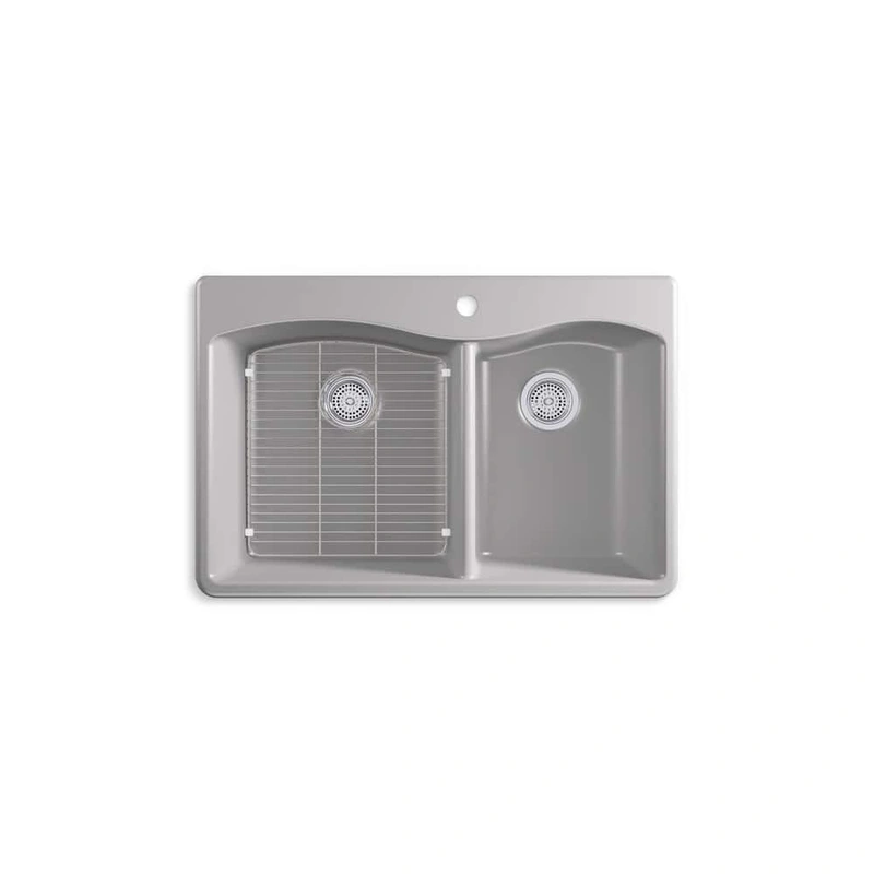 Kennon Matte Grey Double Bowl Kitchen Sink The KOHLER Kennon Double Bowl Kitchen Sink combines style and functionality with its premium matte grey Neoroc surface that resists scratches, stains, and fading. Its elegant, wave-like design and spacious bowls o