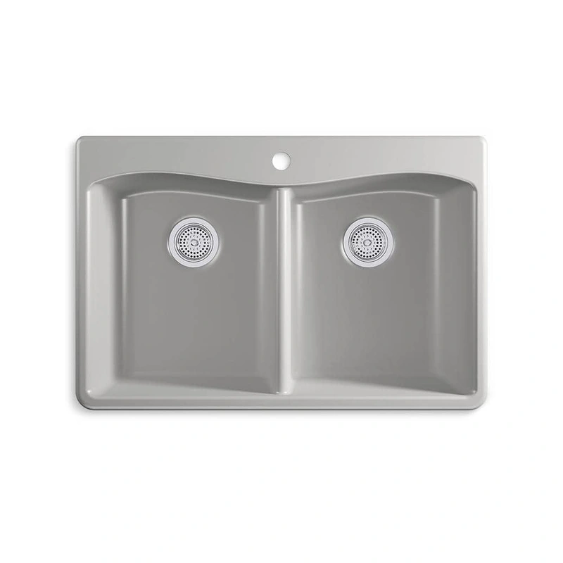 Transform your kitchen with the KOHLER Kennon sink, a true masterpiece of understated elegance and robust functionality. Its wave-like curves and matte grey allure evoke a sense of modern luxury, perfectly melding form with function. Style this sink within a monochrome palette for a chic, contemporary kitchen, or pair with contrasting textured countertops to create a striking focal point. With the Kennon, elevate your space and celebrate the seamless blend of beauty and durability for a kitchen that inspires.