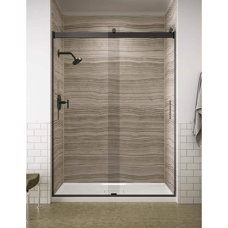 KOHLER Levity Sliding Shower Door Elevate your shower experience with the KOHLER Levity Frameless Sliding Shower Door. Featuring an innovative bypass system and quiet, smooth sliding action, this door combines modern aesthetics with functional elegance. Pr