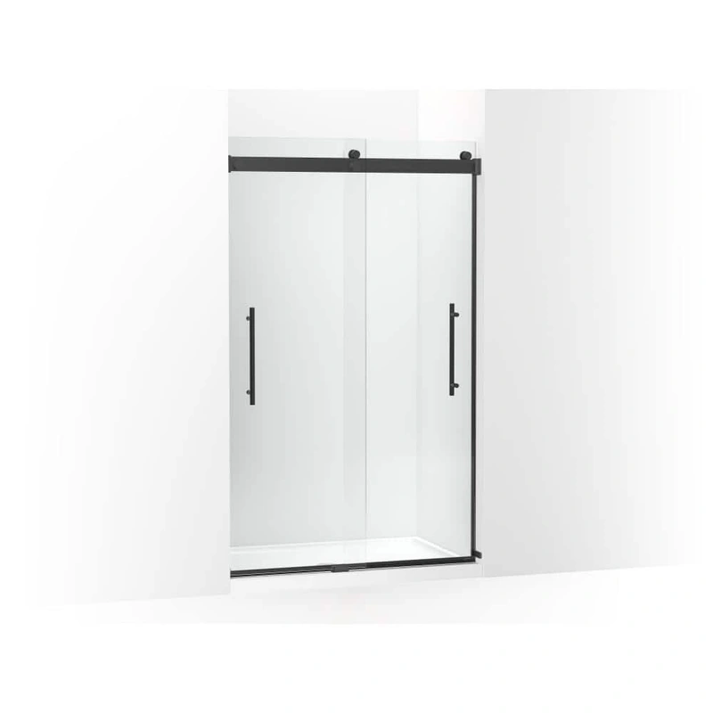 The KOHLER Levity Plus Sliding Shower Door combines innovative design with minimalist style for modern bathrooms. Featuring an effortless sliding mechanism with stainless steel rollers, this frameless door offers a seamless blend with its 5/16″ thick crystal clear glass and matte black finish.