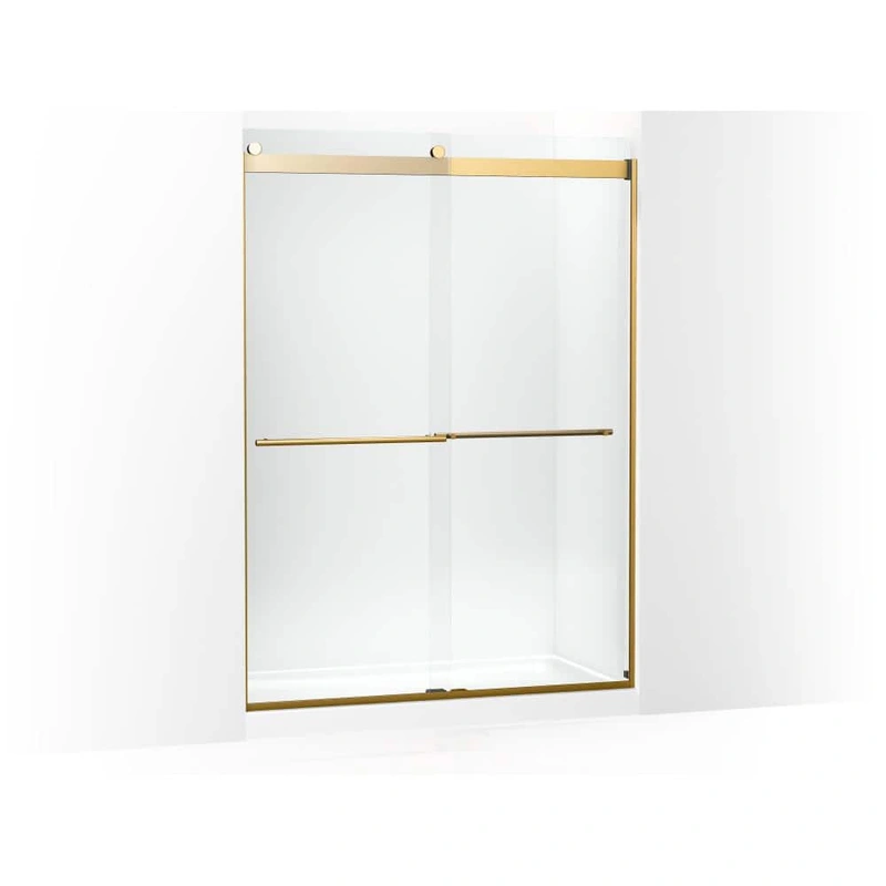 Elevate your bathroom with the KOHLER Levity Plus Frameless Shower Door, featuring premium Crystal Clear glass and an innovative roller design for effortless, quiet sliding. The sleek, minimalist look is enhanced by 3/8″ thick glass and a stunning brushed moderne brass finish, making every shower feel luxuriously polished.
