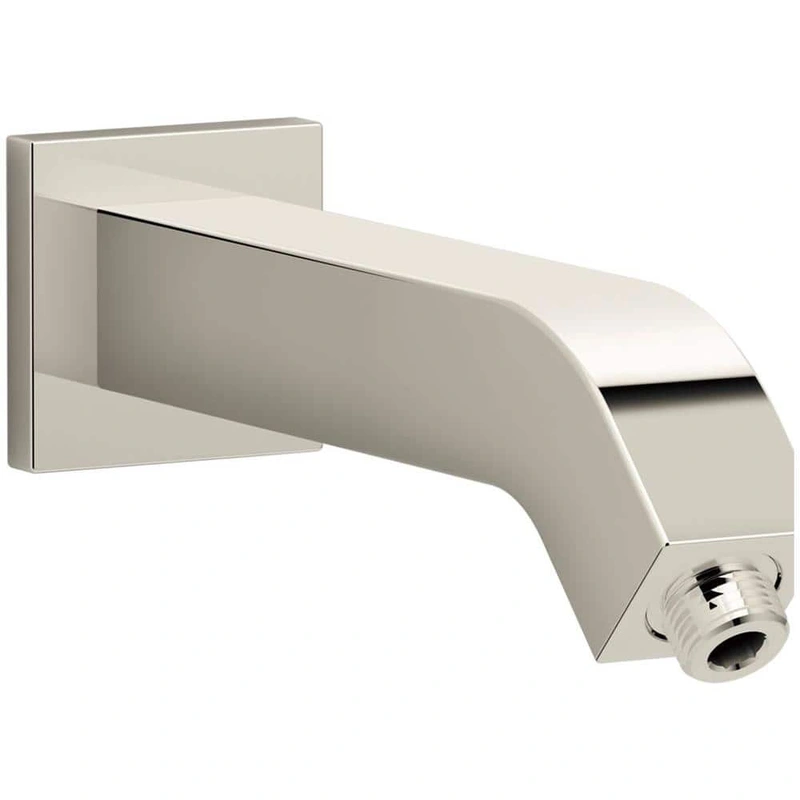 KOHLER Loure Polished Nickel Shower Arm Transform your shower setup with the KOHLER Loure Wall Mount Shower Arm in Vibrant Polished Nickel. This sleek arm boasts a minimalist design with an 8.5-inch reach, crafted from premium materials to resist corrosion