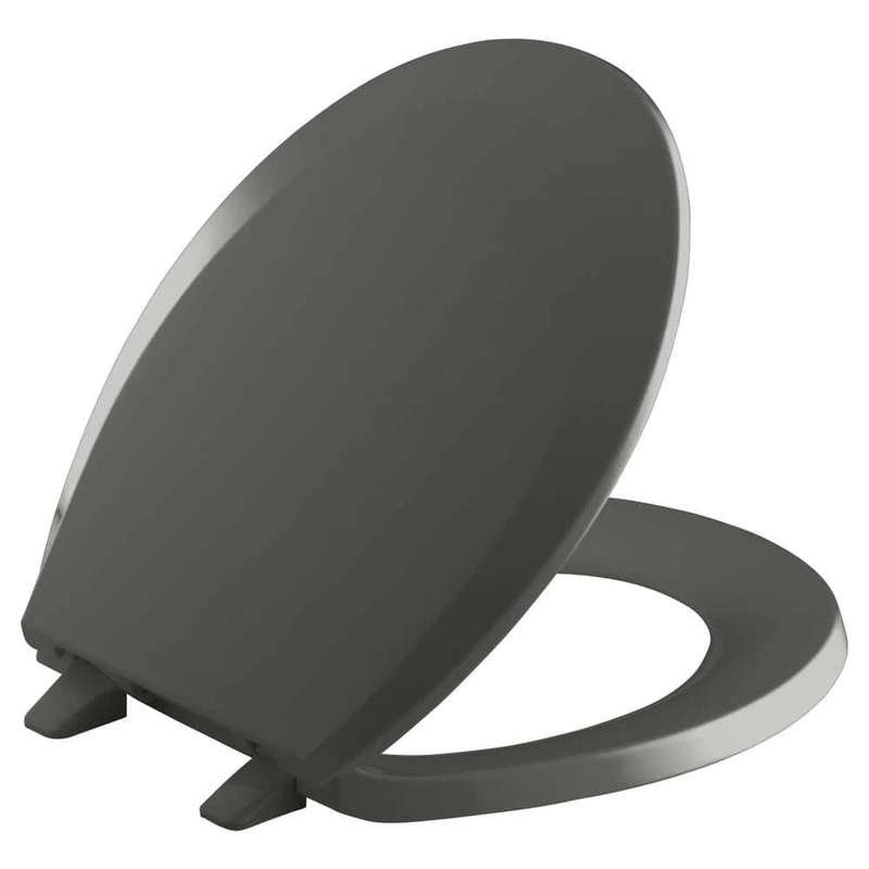 KOHLER Lustra Round Toilet Seat with Q2 Advantage in Thunder Grey The KOHLER Lustra Round Closed-Front Toilet Seat in Thunder Grey offers superior comfort and style, fitting seamlessly into your bathroom decor. Made from durable, stain-resistant plastic, t