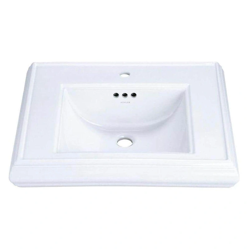 KOHLER Memoirs Pedestal Sink Basin Elevate your bathroom with the KOHLER Memoirs 5-1/4 in. Ceramic Pedestal Sink Basin. Crafted from durable fireclay for long-lasting beauty, this classy sink offers a traditional rectangular design that complements any dec