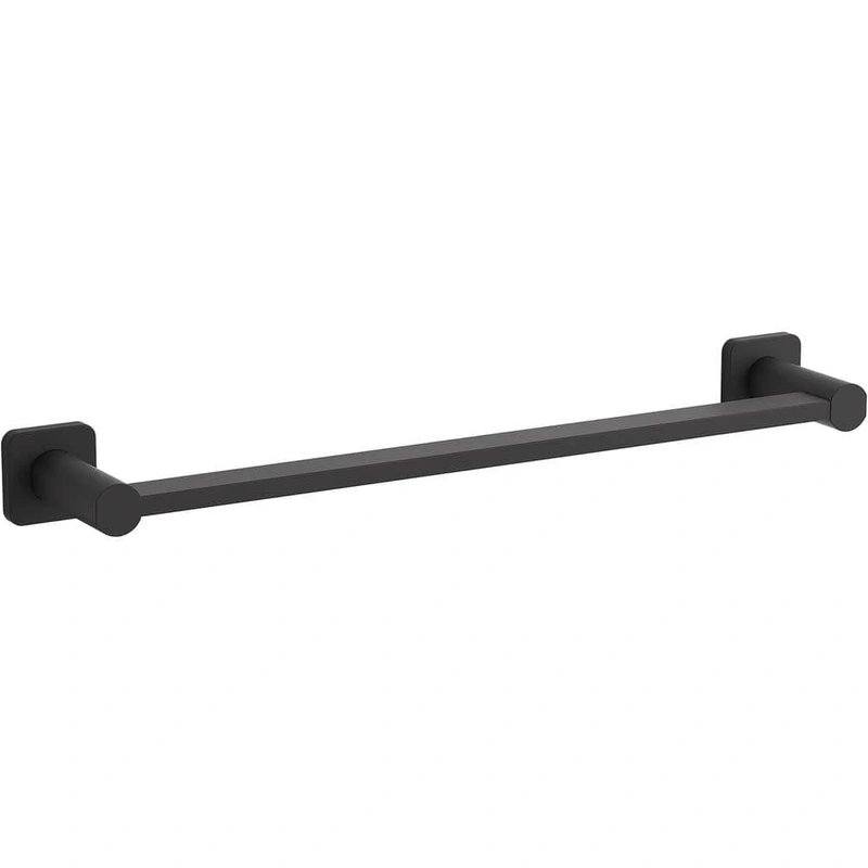 KOHLER Parallel 18" Matte Black Towel Bar The KOHLER Parallel 18" Wall Mounted Towel Bar in Matte Black is a refined blend of circular aesthetics within a square design, perfect for adding a touch of modern sophistication to any bathroom. Crafted from prem