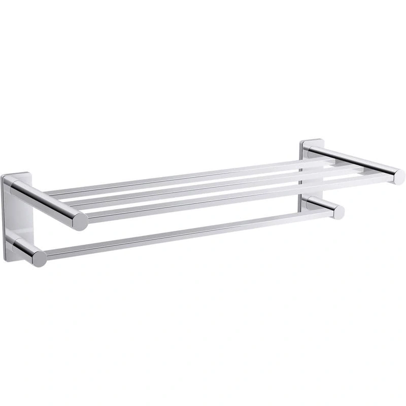 KOHLER Parallel Towel Rack in Polished Chrome The KOHLER Parallel Towel Rack seamlessly combines form and function with its polished chrome finish and modern design. Built with durable premium metal, this towel rack features a 24-inch upper shelf and integ