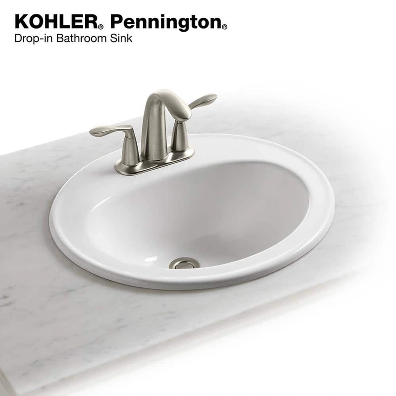 KOHLER Pennington Oval Bathroom Sink The KOHLER Pennington bathroom sink, crafted from durable vitreous china, combines elegance with functionality. Its distinctive oval shape and raised rim add a touch of classic sophistication while preventing water spil