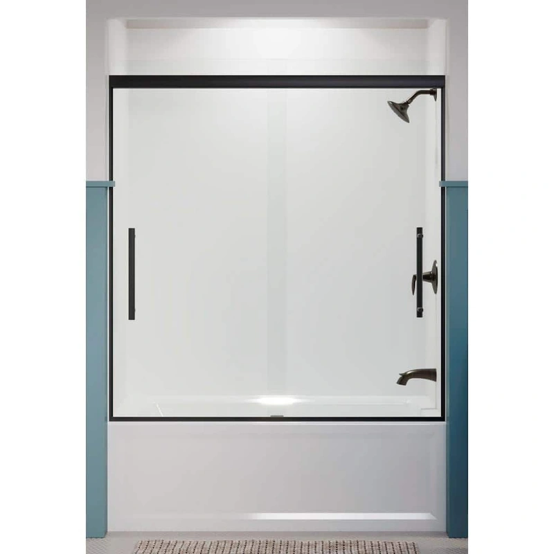Pleat Frameless Sliding Bathtub Door The KOHLER Pleat Frameless Sliding Bathtub Door, with its sleek matte black finish and crisp lines, elevates any bathroom's style. Its innovative design features crystal clear tempered glass and a concealment system for