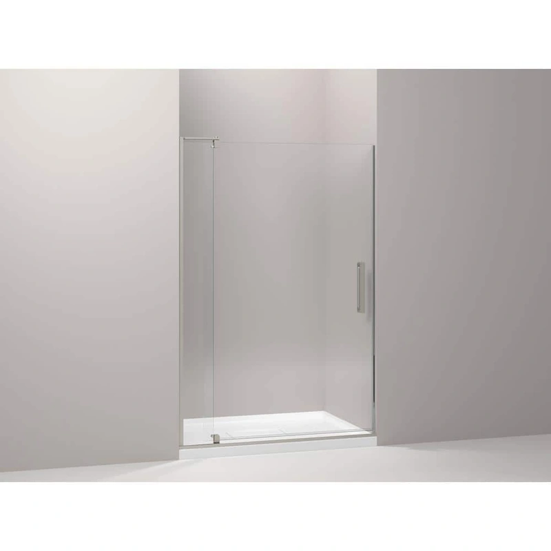 KOHLER Revel Pivot Frameless Shower Door Elevate your bathroom design with the KOHLER Revel 44 in. W x 70 in. H Pivot Frameless Shower Door. Featuring anodized brushed nickel hardware and crystal clear tempered glass, this door provides an elegant and mode