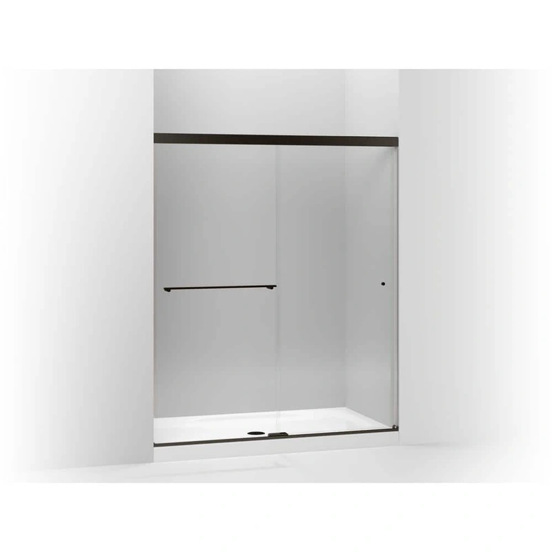 KOHLER Revel Frameless Sliding Shower Door Elevate your bathroom design with the KOHLER Revel Frameless Sliding Shower Door. Crafted with crystal-clear tempered glass and an anodized dark bronze finish, this shower door offers both elegance and durability.