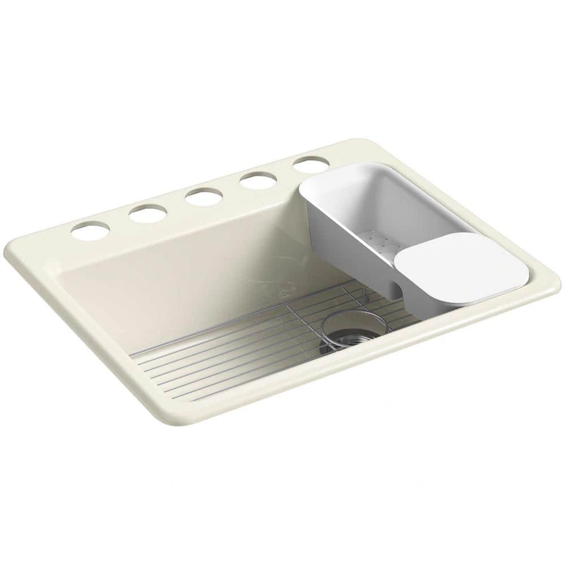 KOHLER Riverby 27-inch Single Bowl Kitchen Sink in Biscuit The KOHLER Riverby Undermount Kitchen Sink brings timeless elegance and practicality to your kitchen. Made from durable enameled cast iron, this sink resists chipping, cracking, and burns for long-