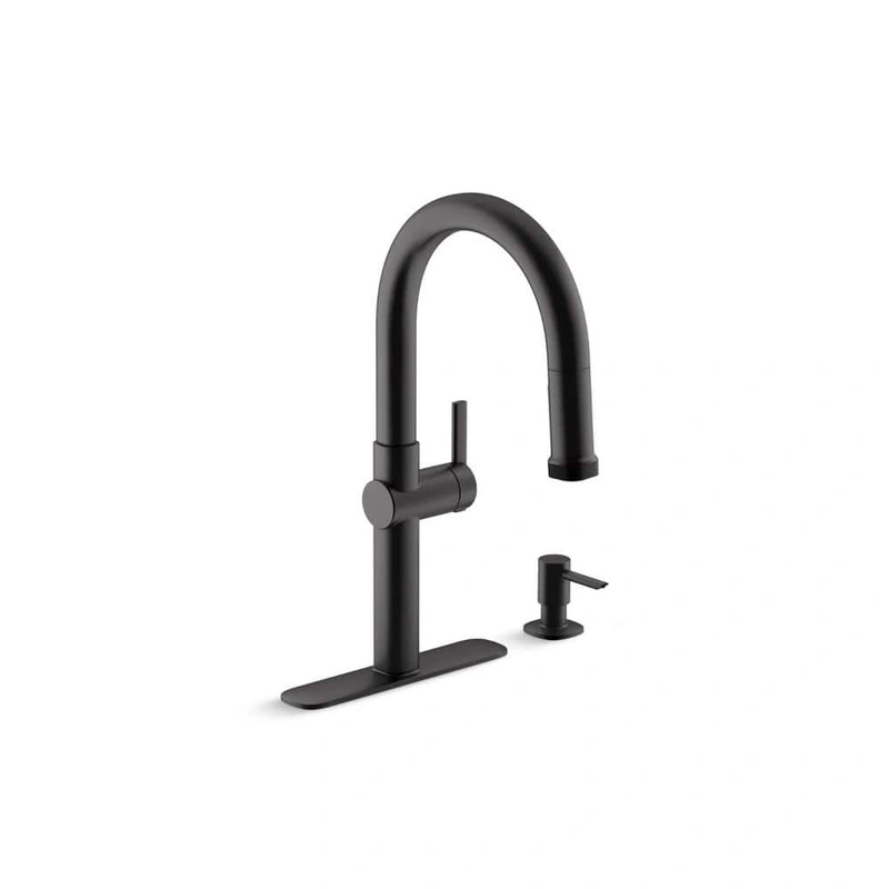 Step into the realm of timeless design with the KOHLER Rune Kitchen Fauceta true masterpiece in matte black that radically transforms your culinary space into an artist’s haven. This faucet’s sleek silhouette is reminiscent of modern sculptures, offering both utility and visual allure. Utilize the intuitive pull-down sprayhead to effortlessly indulge in a culinary cleanse, turning cleaning tasks into a sophisticated ritual. A must-have fixture, it embodies a harmonious blend of form and function, crafting a setting that is both luxurious and serene.