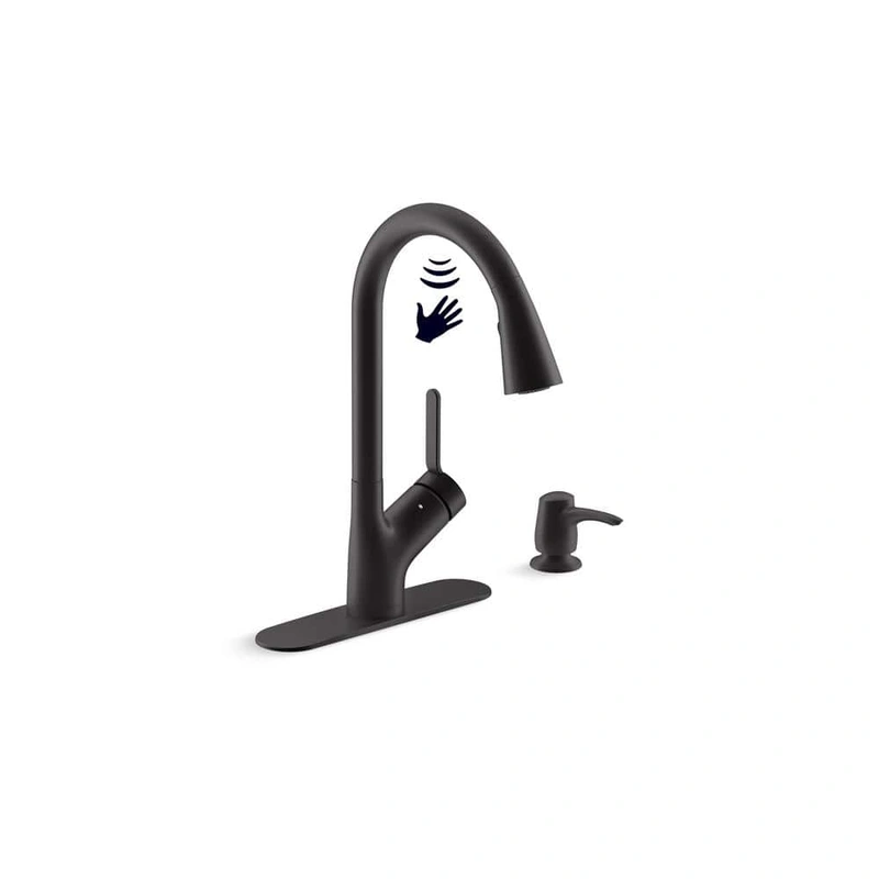 KOHLER Setra Touchless Kitchen Faucet - Matte Black Upgrade your kitchen with the KOHLER Setra Touchless Pull-Down Sprayer Kitchen Faucet. This faucet's sleek, matte black finish seamlessly blends with any modern decor while the high-tech touchless feature