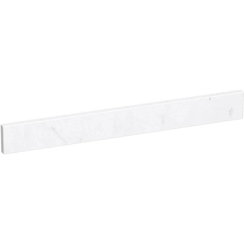 Enhance your bathroom with the KOHLER Silestone Quartz Vanity Backsplash in Eternal Statuario. Engineered for durability, this backsplash not only elevates aesthetics but also protects your walls from potential water damage. Create a seamless look with easy installation and pair with optional side splashes for full coverage.