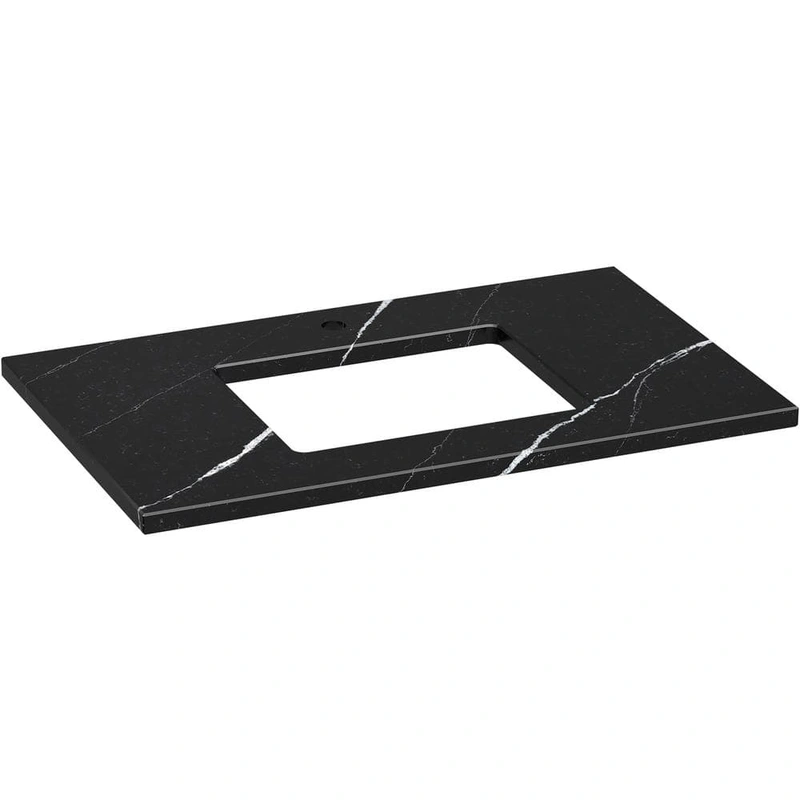 Elevate your bathroom with the KOHLER Silestone Quartz Vanity Top in Eternal Marquina, a premium surface that combines style and durability. Crafted with over 90% quartz, this vanity top offers exceptional stain resistance and longevity, making it perfect for high-traffic spaces. Its elegant black tone and precise rectangular cutout bring a sophisticated, yet natural look to any bathroom design.