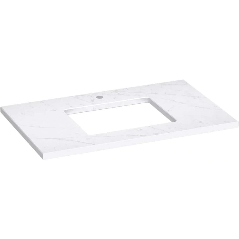 KOHLER Silestone Quartz Rectangle Vanity Top The KOHLER Silestone Quartz Rectangle Vanity Top in Eternal Statuario offers a durable and stylish solution for your bathroom design. Crafted from over 90% quartz, it provides exceptional stain resistance and a