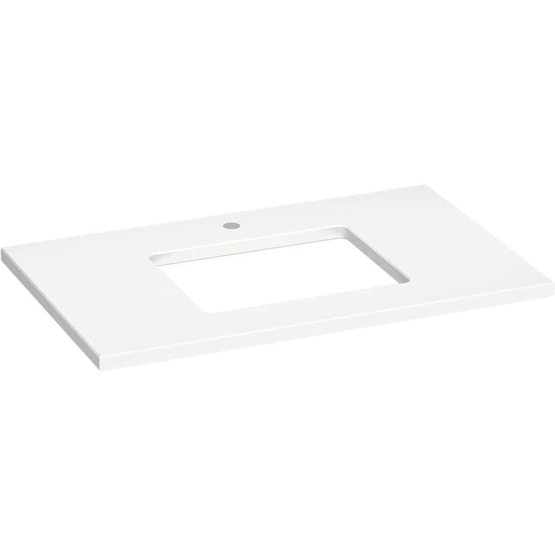 KOHLER Silestone Miami White Quartz Vanity Top Enhance your bathroom with the KOHLER Silestone Miami White Quartz Vanity Top. Made of over 90% quartz, this durable and stain-resistant surface provides a sleek, modern look with its flat, square edges. Perfe