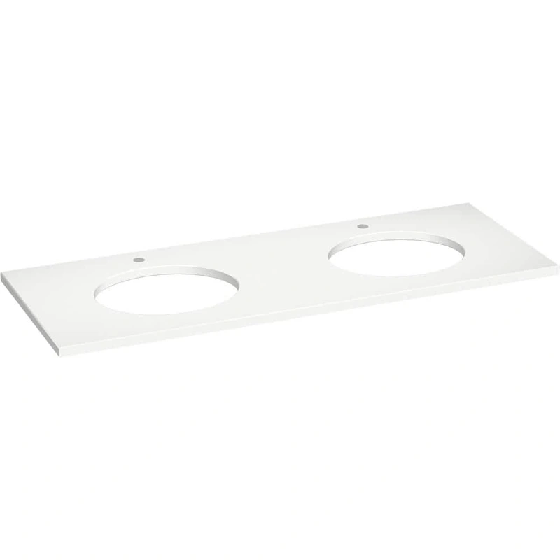 Enhance your bathroom with the KOHLER Silestone 61-inch Quartz Vanity Top in Miami White. Crafted from over 90% quartz, this durable surface is resistant to stains and easy to maintain, offering both style and resilience. Designed to fit KOHLER vanities, it includes double oval cutouts to support your choice of sinks for a sophisticated and customizable bathroom design.
