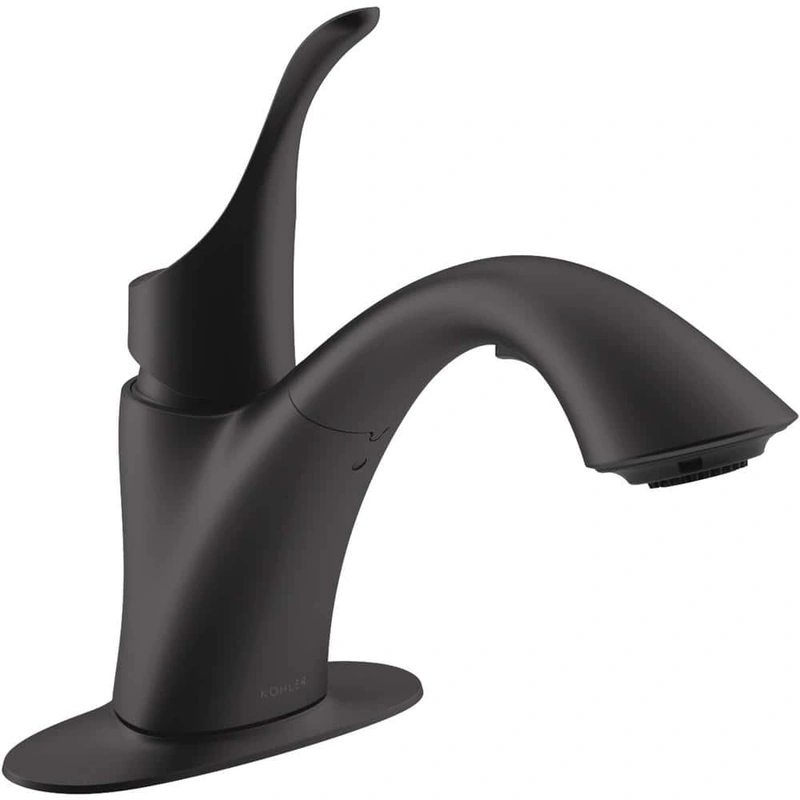 KOHLER Simplice Matte Black Utility Faucet The KOHLER Simplice Utility Faucet brings both elegance and top-tier functionality to laundry rooms and other utility spaces. This faucet features a dual-function pull-out spray head, allowing for efficient operat