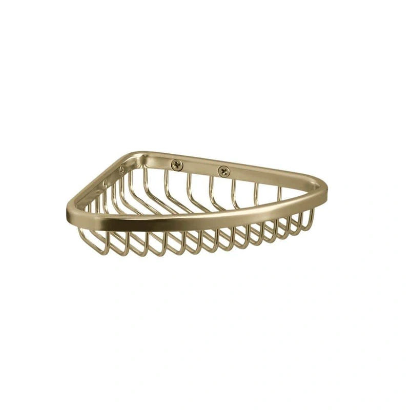 KOHLER Vibrant Gold Corner Shower Basket Enhance your shower experience with the KOHLER Vibrant Gold Corner Shower Basket, crafted from stainless steel for exceptional durability and style. Its compact corner design maximizes space, while the vibrant Frenc