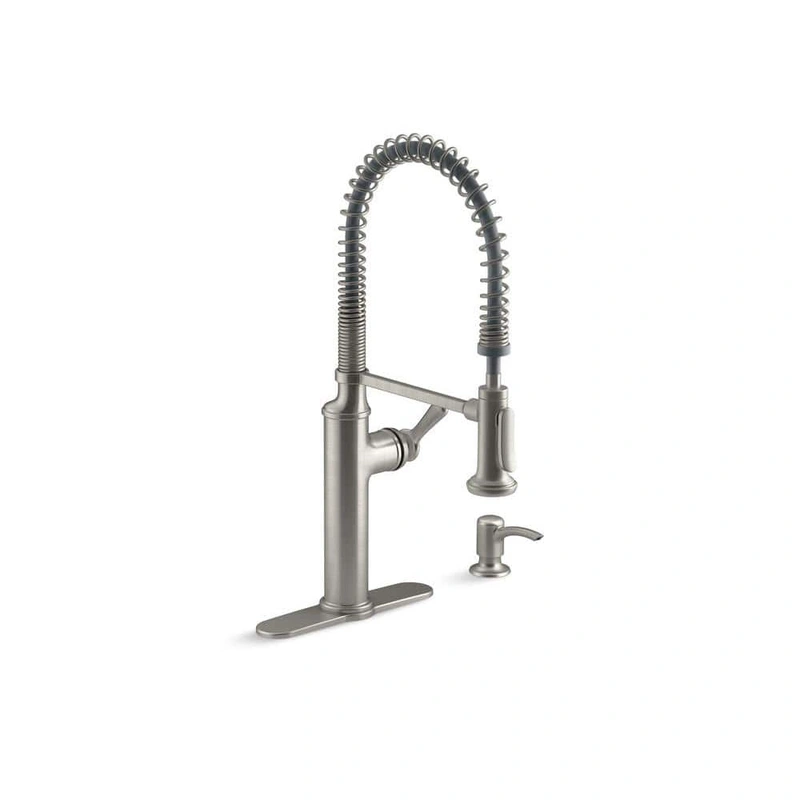 KOHLER Sous Pro-Style Pull Down Kitchen Faucet The KOHLER Sous Pro-Style Pull Down Kitchen Faucet in Vibrant Stainless Steel draws inspiration from professional kitchens, offering exceptional control and flexibility. Featuring a unique exposed-spring desig