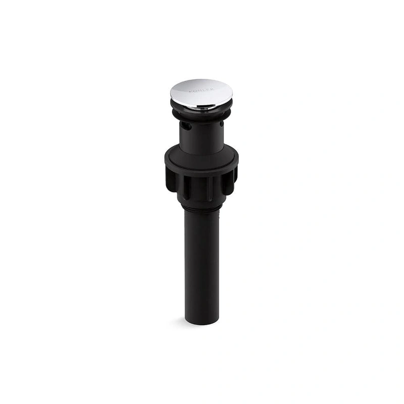 KOHLER Clicker Drain with Overflow The KOHLER Standard Clicker Drain adds a touch of elegance to any bathroom or kitchen sink with its polished chrome finish. Designed with an overflow feature, this drain fits universally across sinks, ensuring a seamless