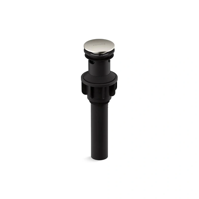 Kohler Clicker Drain with Overflow Enhance your sink with the Kohler Standard Clicker Drain. Designed with a durable plastic construction and a vibrant brushed nickel finish, this pop-up drain offers a universal fit for sinks with a 1-1/4" connection, and