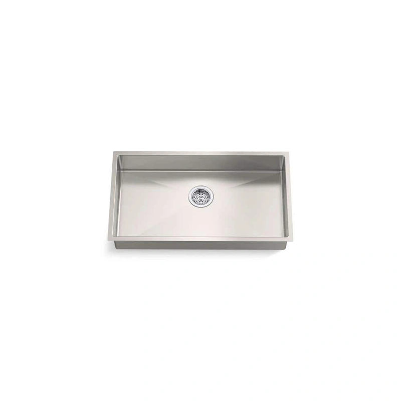 KOHLER Strive 32-inch Undermount Sink The KOHLER Strive 32-inch Undermount Single-Bowl Kitchen Sink combines professional-grade design with effortless maintenance. Crafted from thick, 16-gauge stainless steel, it features a unique sound-absorption system f