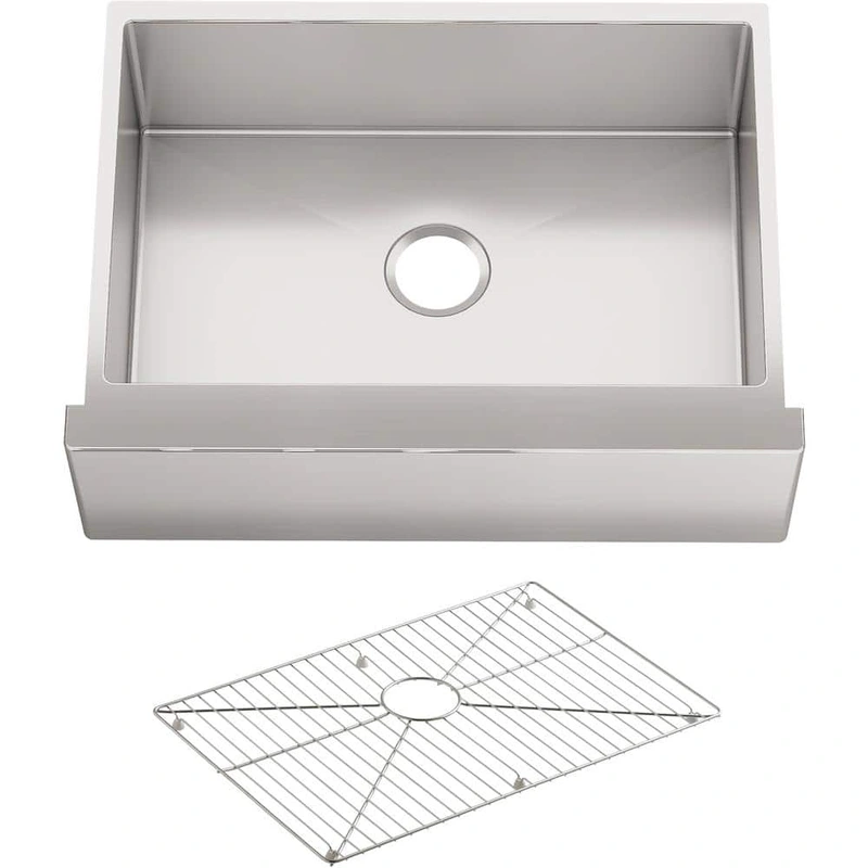 KOHLER Strive 30" Stainless Steel Apron Front Sink Kit Experience enhanced functionality with the KOHLER Strive 30" Undermount Farmhouse Apron Front Kitchen Sink. This single-bowl sink, crafted from premium 16-gauge stainless steel, features a self-trimmin