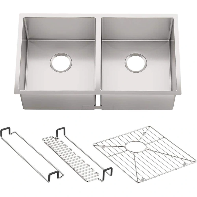 KOHLER Strive 32" Double Bowl Undermount Sink The KOHLER Strive 32" Double Bowl Undermount Sink blends professional style and functionality with premium 16-Gauge stainless steel construction. Designed with sound-absorbing technology, it provides a quieter
