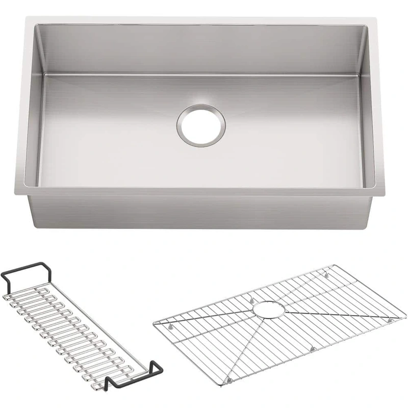 KOHLER Strive Undermount Stainless Steel Kitchen Sink The KOHLER Strive Undermount Kitchen Sink seamlessly blends professional-grade stainless steel construction with practicality, featuring a spacious single bowl perfect for large cookware. Equipped with