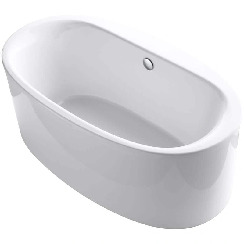 KOHLER Sunstruck 65 in. Freestanding Bathtub in White Dive into serenity with the KOHLER Sunstruck Freestanding Bathtub, designed to harmonize comfort and style. Featuring an ergonomic oval shape and deep soaking depth, this bathtub promises a luxurious ba