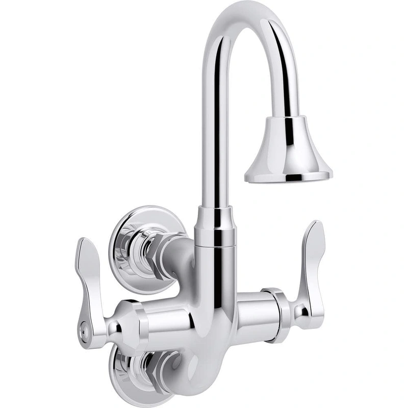 The KOHLER Triton Bowe Cannock Wall Mount Faucet is a sleek bathroom upgrade, featuring a timeless polished chrome finish and durable solid brass construction. Its contemporary design includes lever handles and a gooseneck spout perfect for modern spaces. Enjoy the assurance of a KOHLER 1-year warranty with this reliable fixture.