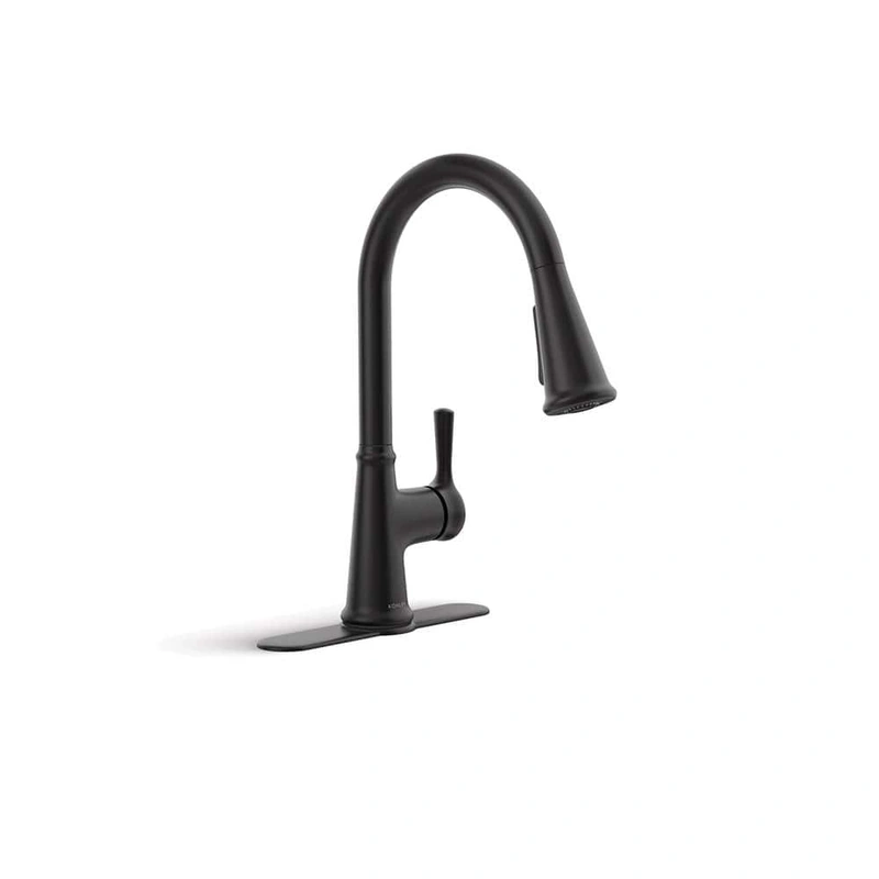 Matte Black Single-Handle Pull-Down Kitchen Faucet The KOHLER Tyne Kitchen Faucet combines sleek design with powerful functionality. Its high-arching, swivel spout ensures easy use while the pull-down spray offers a wide, forceful Sweep spray, making kitch