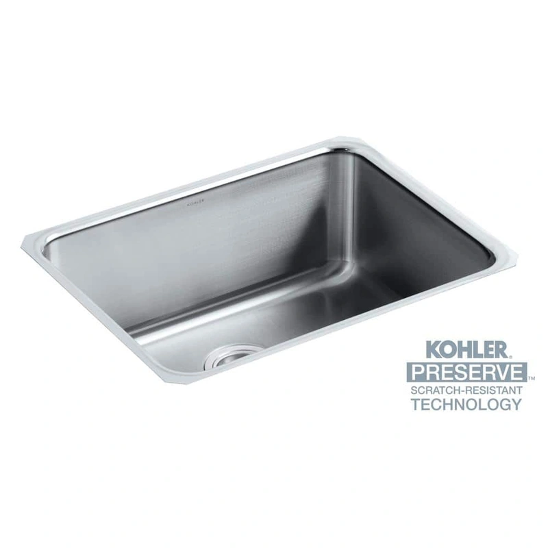 23" Stainless Steel Undermount Sink Kit The KOHLER Undertone 23" Single Bowl Undermount Kitchen Sink combines durability and elegance with innovative features. Crafted from premium stainless steel, this sink resists scratches and wear, while the SilentShie