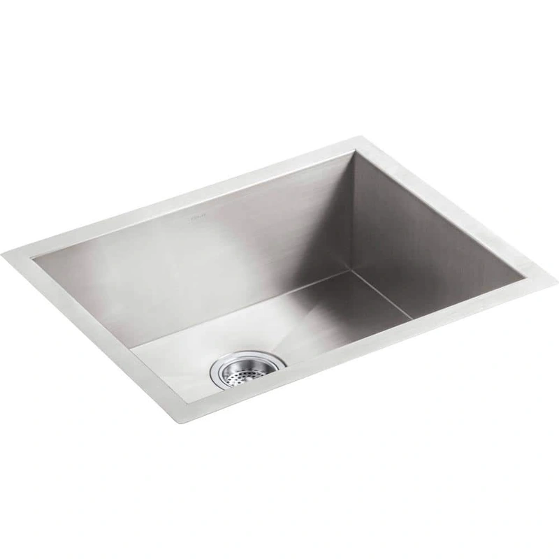 KOHLER Vault 24" Stainless Steel Undermount Kitchen Sink The KOHLER Vault 24-inch Single Bowl Undermount Kitchen Sink combines modern design with durable functionality. Constructed from 18-gauge stainless steel, this sink offers a spacious bowl with elegan