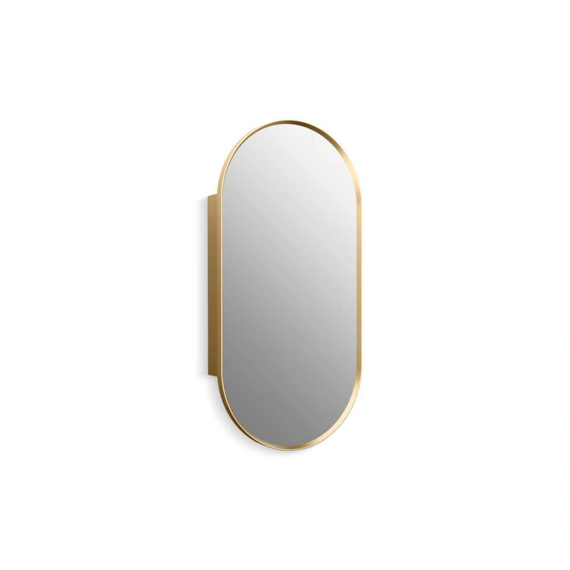 KOHLER Verdera 20" x 40" Oval Medicine Cabinet - Gold Elevate your bathroom with the KOHLER Verdera Medicine Cabinet. This elegant oval cabinet features a glamorous Moderne Brushed Gold finish and a trim profile that offers a luxurious touch while ensuring
