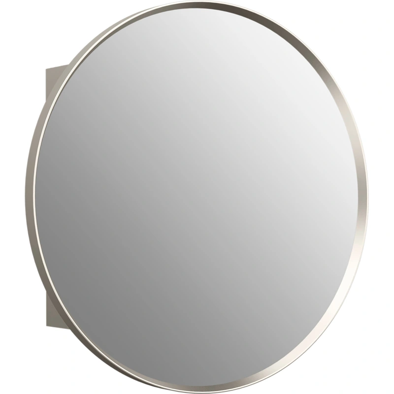 KOHLER Verdera Brushed Nickel Round Medicine Cabinet Experience the perfect blend of style and functionality with the KOHLER Verdera Brushed Nickel Medicine Cabinet. Featuring mirrors on both the outside and inside, this elegantly designed cabinet enhances