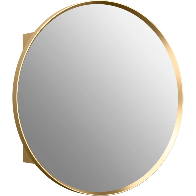KOHLER Verdera Round Medicine Cabinet - Moderne Brushed Gold Elevate your bathroom design with the KOHLER Verdera Round Medicine Cabinet, featuring a luxurious Moderne Brushed Gold finish. With its mirrored interior and adjustable tempered-glass shelf, it