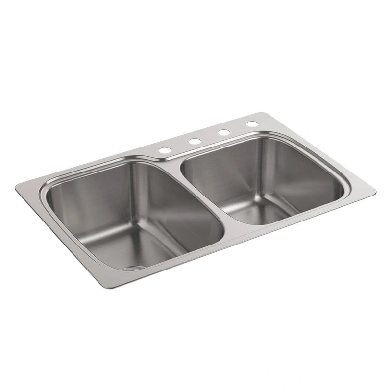 KOHLER Verse 33" Double Bowl Stainless-Steel Sink The KOHLER Verse 33" stainless steel sink offers a sleek, modern addition to any kitchen with its double-bowl design and durable construction. Engineered for easy cleanup and reduced noise, this sink provid