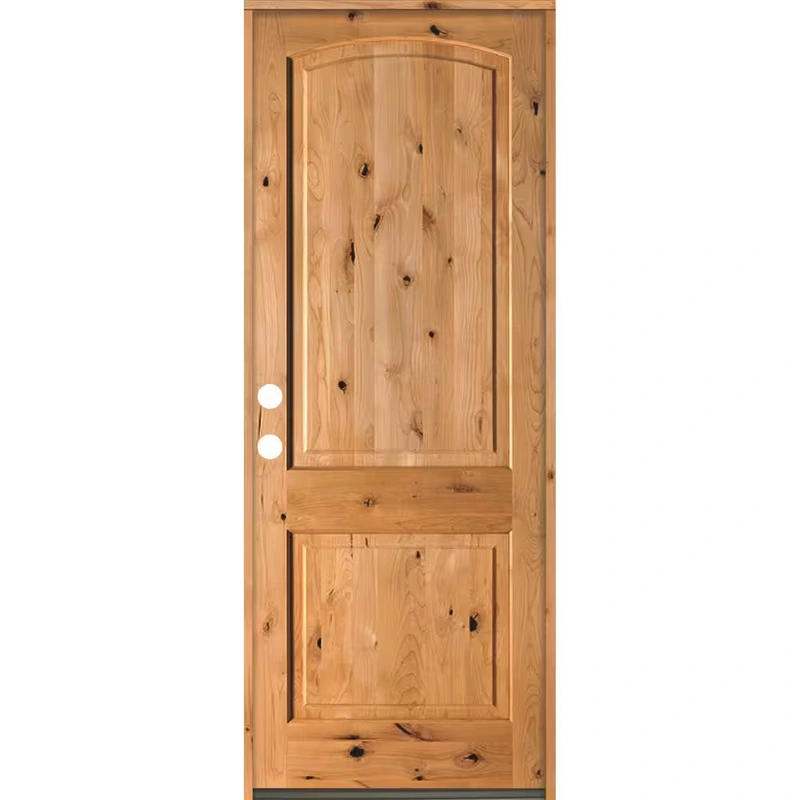Upgrade your home’s aesthetic with the Krosswood Doors 32 in. x 96 in. Rustic Knotty Alder Arch Top Clear Stain Right-Hand Inswing Wood Single Prehung Front Door. Expertly crafted from high-quality knotty alder wood, this door features an elegant arch top and a clear stain finish that highlights the unique characteristics and natural beauty of the wood. The right-hand inswing configuration ensures functionality and convenience, making it a seamless addition to any entryway.
