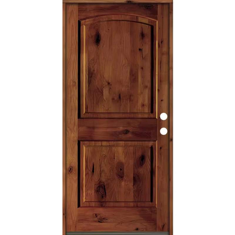 Krosswood Doors 42" x 80" Rustic Knotty Alder Arch Top Red Chestnut Stain Left-Hand Inswing Wood Single Prehung Front DoorElevate your home's curb appeal with the Krosswood Doors Rustic Knotty Alder Arch Top Front Door. This 42-inch by 80-inch prehung door