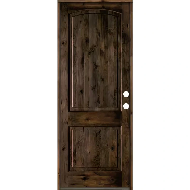 Krosswood Doors 42" x 96" Knotty Alder 2-Panel Left-Hand/Inswing Black Stain Wood Prehung Front DoorElevate your home's entrance with the Krosswood Doors 42" x 96" Knotty Alder Front Door. This door combines the timeless beauty of knotty alder wood with a