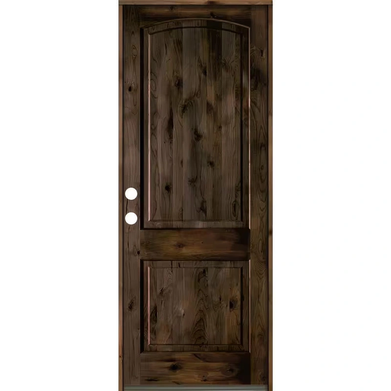 Krosswood Doors 42″ x 96″ Knotty Alder 2-Panel Right-Hand/Inswing Black Stain Wood Prehung Front Door