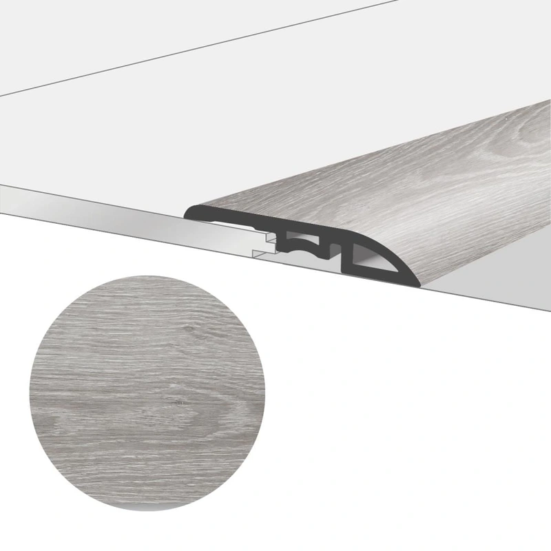 The Lucida GlueCore Vinyl Reducer in Seal Gray is perfect for seamless transitions between flooring surfaces of varying heights. Made from durable vinyl, this versatile reducer provides a clean, wood-look finish that complements any room design. Ideal for use with vinyl, hardwood, tile, or low pile carpeting, it ensures a smooth and professional finish.