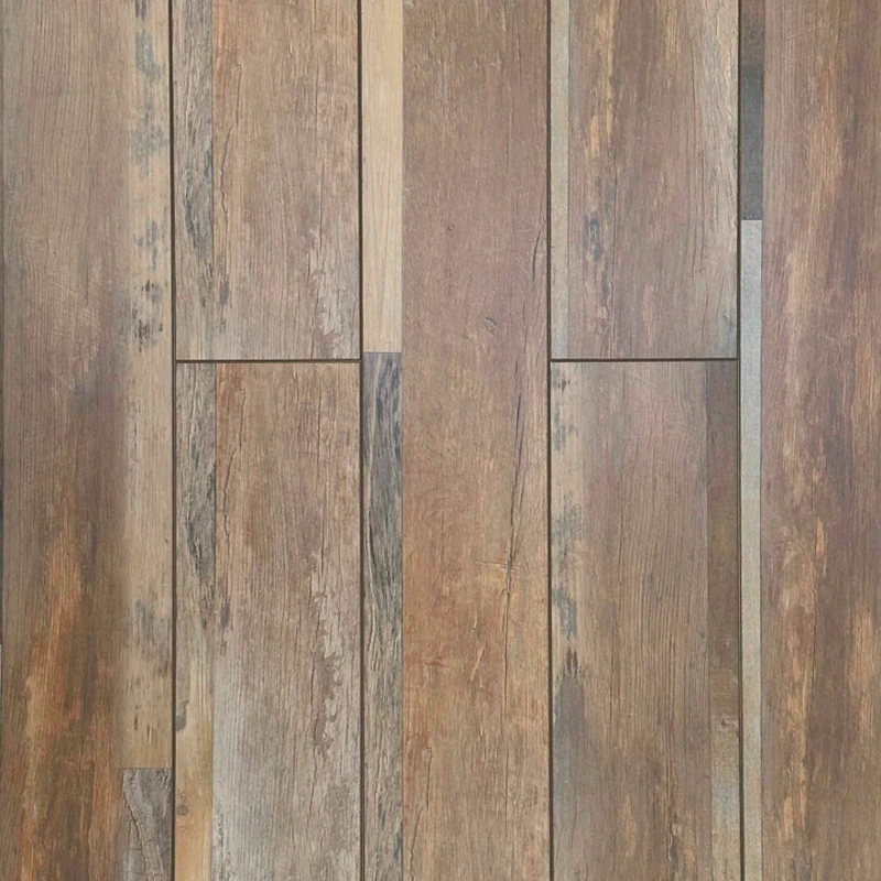 • Reclaimed Wood Aesthetic: A beautifully distressed design with varied shades and subtle texture that mimics the look of weathered, aged planks.