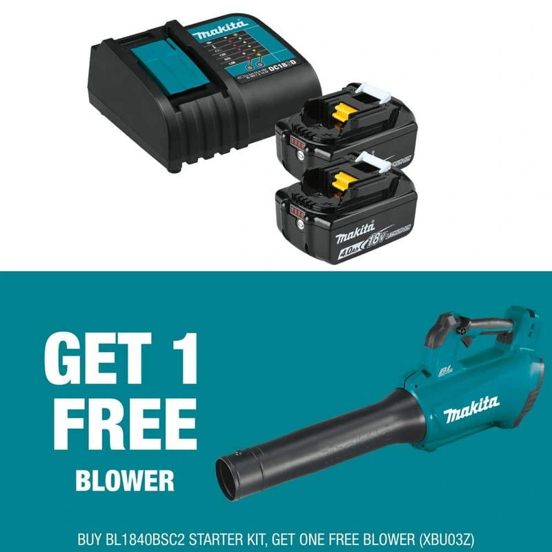 Makita 18V LXT Battery & Charger Starter Pack with Cordless Blower Power your job site with the Makita 18V LXT Lithium-Ion Battery and Charger Starter Pack, featuring the efficient brushless cordless blower. Delivering robust runtime and quick charging